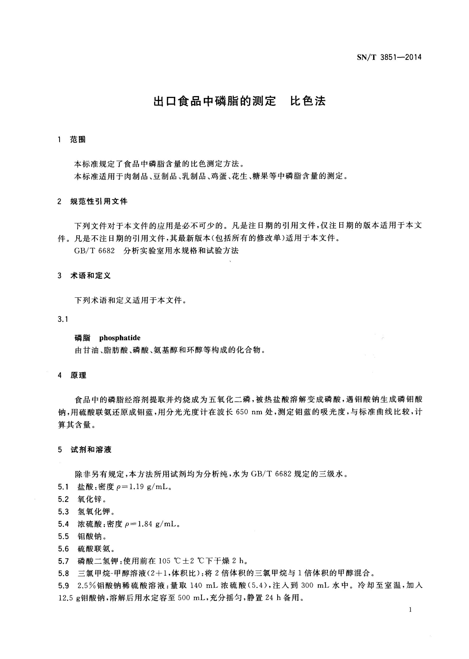出口食品中磷脂的測(cè)定 SN/T 3851-2014