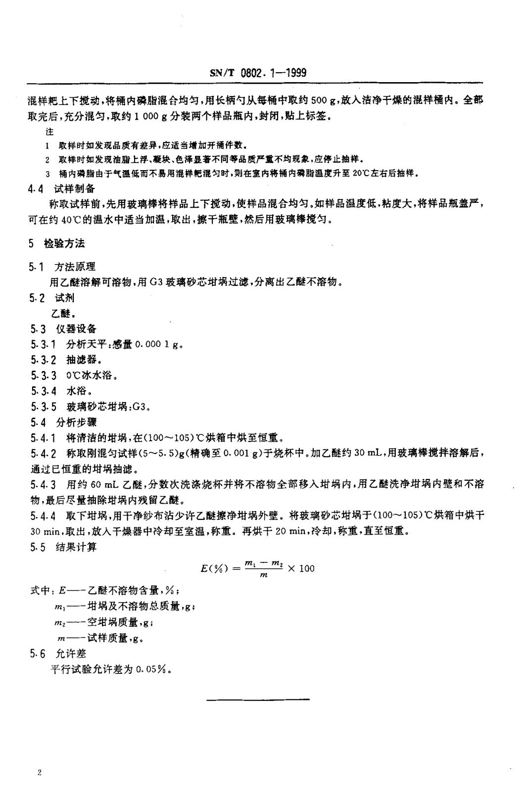 進(jìn)出口磷脂乙醚不容物檢測方法 SN/T 0802.1-1999